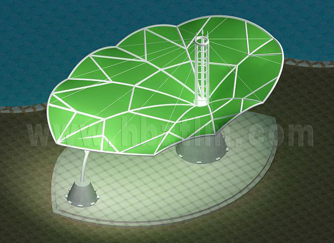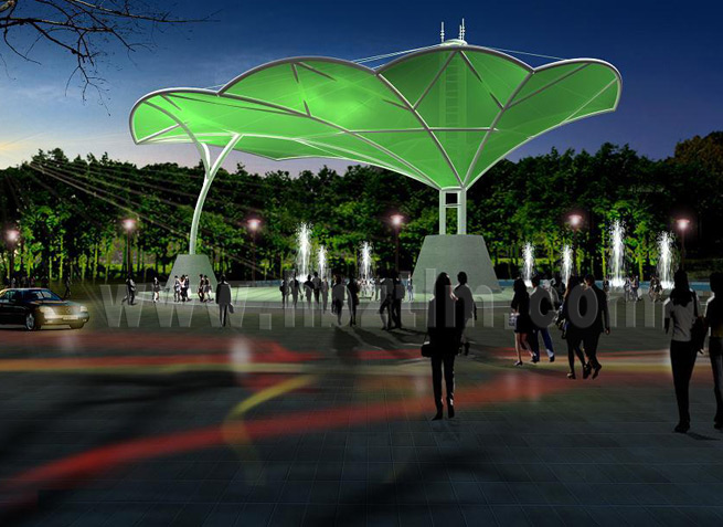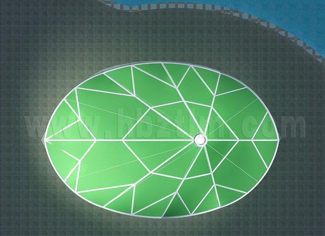 該項目為永久式景觀遮陽傘,其結(jié)構(gòu)為內(nèi)撐式冒頂膜...