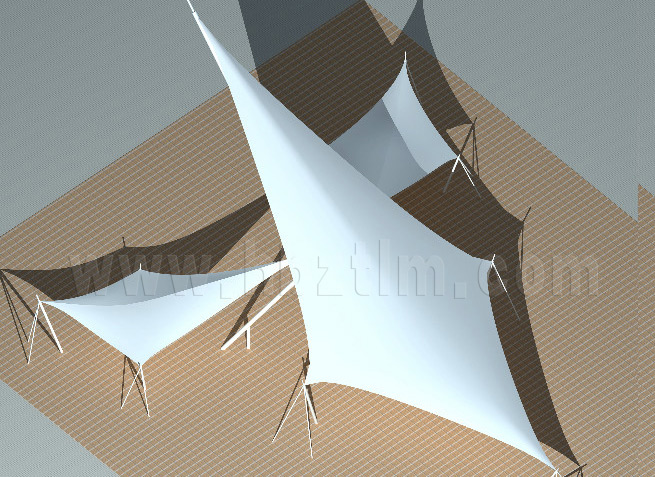 膜材采用PVDF國產(chǎn)或者進(jìn)口建筑膜材、PTFE玻璃纖維建筑膜材、ETFE透明的永久性建筑膜材;自動放樣裁剪,高頻焊接,拉伸效果超強(qiáng),曲線成型可千變?nèi)f化;膜材質(zhì)保一般可達(dá)15-20年。