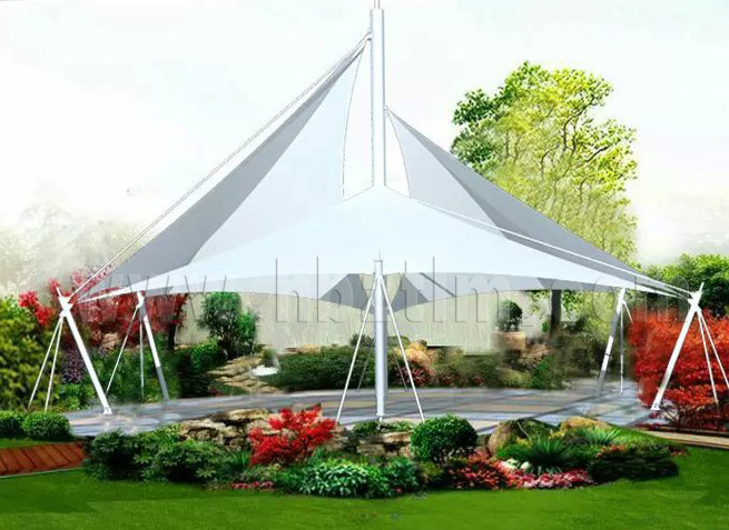 該項目為永久式景觀遮陽傘,其結(jié)構(gòu)為內(nèi)撐式冒頂膜...