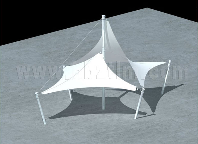 該項目為永久式景觀遮陽傘,其結(jié)構(gòu)為內(nèi)撐式冒頂膜...