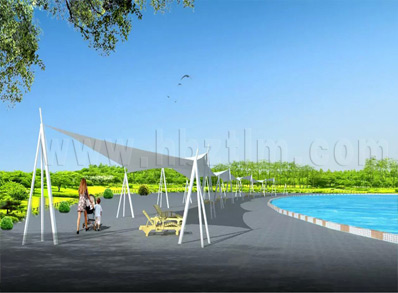 該項目為永久式景觀遮陽傘,其結(jié)構(gòu)為內(nèi)撐式冒頂膜...