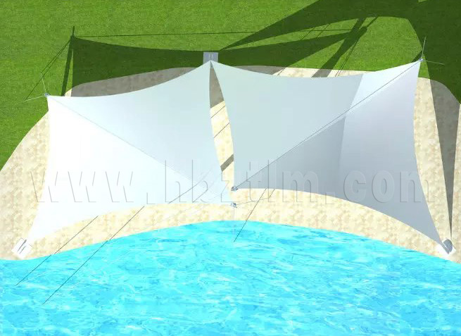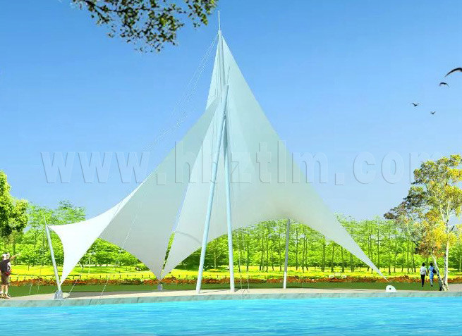 膜材采用PVDF國產(chǎn)或者進口建筑膜材、PTFE玻璃纖維建筑膜材、ETFE透明的永久性建筑膜材;自動放樣裁剪,高頻焊接,拉伸效果超強,曲線成型可千變?nèi)f化;膜材質(zhì)保一般可達15-20年。