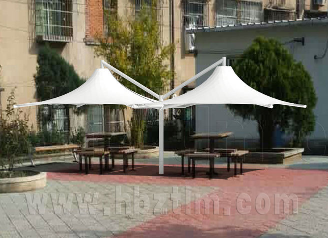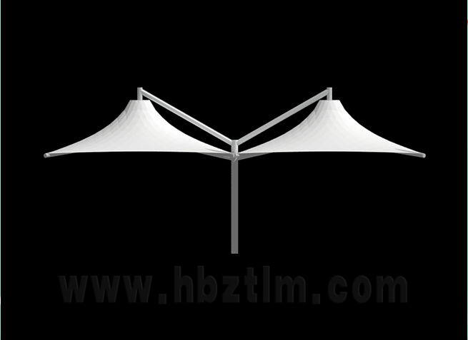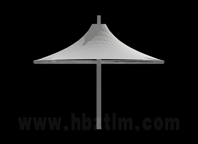 該項目為永久式景觀遮陽傘,其結(jié)構(gòu)為內(nèi)撐式冒頂膜...