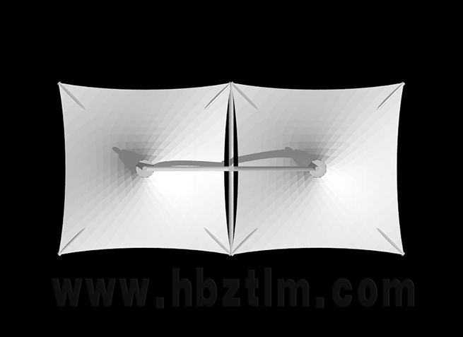 膜材采用PVDF國產(chǎn)或者進口建筑膜材、PTFE玻璃纖維建筑膜材、ETFE透明的永久性建筑膜材;自動放樣裁剪,高頻焊接,拉伸效果超強,曲線成型可千變?nèi)f化;膜材質(zhì)保一般可達15-20年。