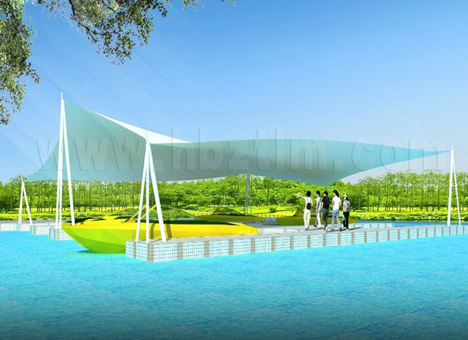 膜材采用PVDF國產(chǎn)或者進口建筑膜材、PTFE玻璃纖維建筑膜材、ETFE透明的永久性建筑膜材;自動放樣裁剪,高頻焊接,拉伸效果超強,曲線成型可千變?nèi)f化;膜材質(zhì)保一般可達15-20年。
