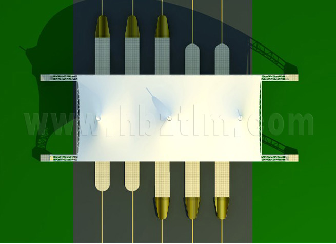膜材采用PVDF國產(chǎn)或者進口建筑膜材、PTFE玻璃纖維建筑膜材、ETFE透明的永久性建筑膜材;自動放樣裁剪,高頻焊接,拉伸效果超強,曲線成型可千變?nèi)f化;膜材質(zhì)保一般可達15-20年。