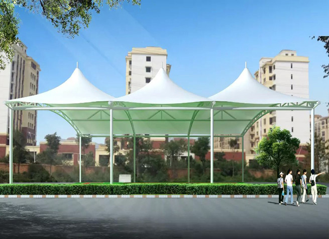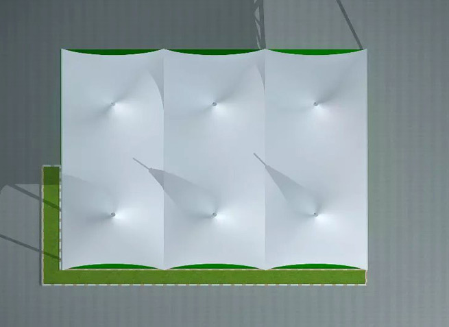 膜材采用PVDF國產(chǎn)或者進口建筑膜材、PTFE玻璃纖維建筑膜材、ETFE透明的永久性建筑膜材;自動放樣裁剪,高頻焊接,拉伸效果超強,曲線成型可千變?nèi)f化;膜材質(zhì)保一般可達15-20年。
