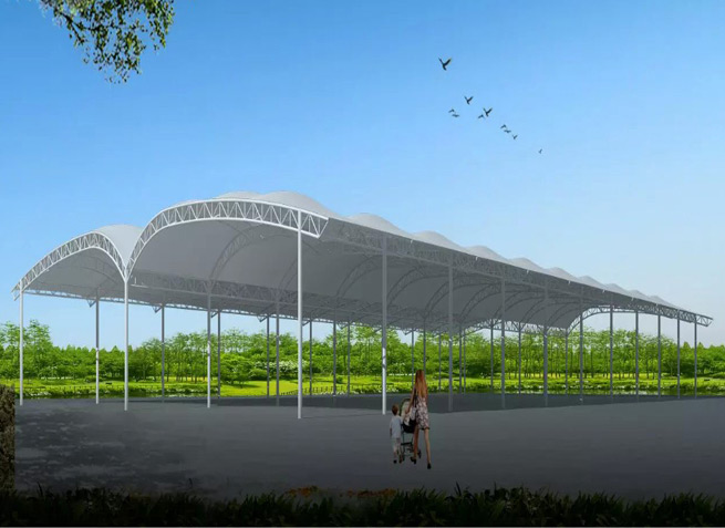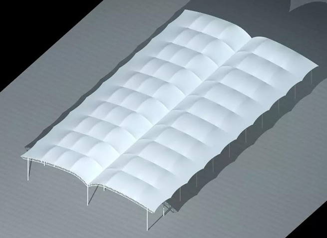 膜材采用PVDF國產(chǎn)或者進(jìn)口建筑膜材、PTFE玻璃纖維建筑膜材、ETFE透明的永久性建筑膜材;自動放樣裁剪,高頻焊接,拉伸效果超強(qiáng),曲線成型可千變?nèi)f化;膜材質(zhì)保一般可達(dá)15-20年。