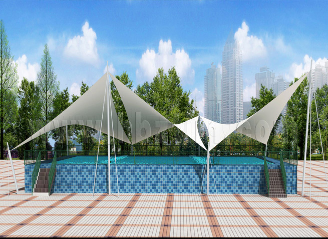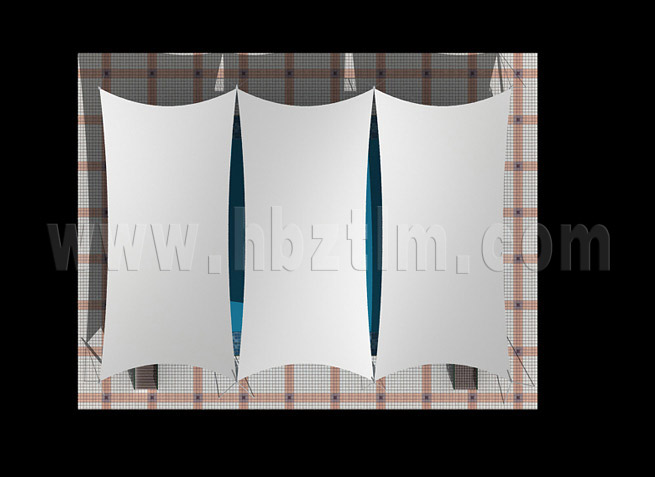 膜材采用PVDF國產(chǎn)或者進(jìn)口建筑膜材、PTFE玻璃纖維建筑膜材、ETFE透明的永久性建筑膜材;自動放樣裁剪,高頻焊接,拉伸效果超強(qiáng),曲線成型可千變?nèi)f化;膜材質(zhì)保一般可達(dá)15-20年。
