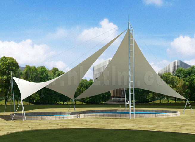 膜材采用PVDF國產(chǎn)或者進(jìn)口建筑膜材、PTFE玻璃纖維建筑膜材、ETFE透明的永久性建筑膜材;自動放樣裁剪,高頻焊接,拉伸效果超強,曲線成型可千變?nèi)f化;膜材質(zhì)保一般可達(dá)15-20年。