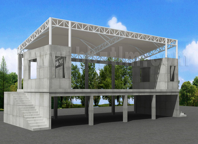 膜材采用PVDF國產(chǎn)或者進口建筑膜材、PTFE玻璃纖維建筑膜材、ETFE透明的永久性建筑膜材;自動放樣裁剪,高頻焊接,拉伸效果超強,曲線成型可千變?nèi)f化;膜材質(zhì)保一般可達15-20年。