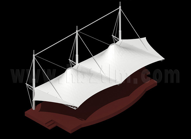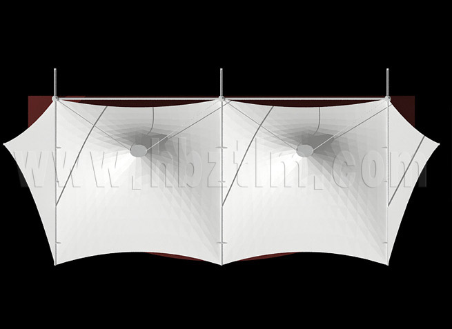膜材采用PVDF國產(chǎn)或者進口建筑膜材、PTFE玻璃纖維建筑膜材、ETFE透明的永久性建筑膜材;自動放樣裁剪,高頻焊接,拉伸效果超強,曲線成型可千變?nèi)f化;膜材質(zhì)保一般可達15-20年。