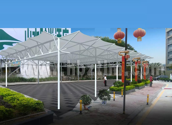 膜材采用PVDF國產(chǎn)或者進口建筑膜材、PTFE玻璃纖維建筑膜材、ETFE透明的永久性建筑膜材;自動放樣裁剪,高頻焊接,拉伸效果超強,曲線成型可千變?nèi)f化;膜材質(zhì)保一般可達15-20年。