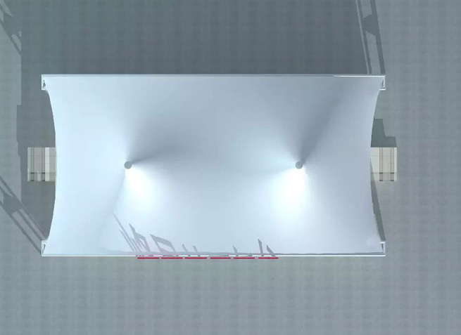 膜材采用PVDF國產(chǎn)或者進(jìn)口建筑膜材、PTFE玻璃纖維建筑膜材、ETFE透明的永久性建筑膜材;自動放樣裁剪,高頻焊接,拉伸效果超強(qiáng),曲線成型可千變?nèi)f化;膜材質(zhì)保一般可達(dá)15-20年。