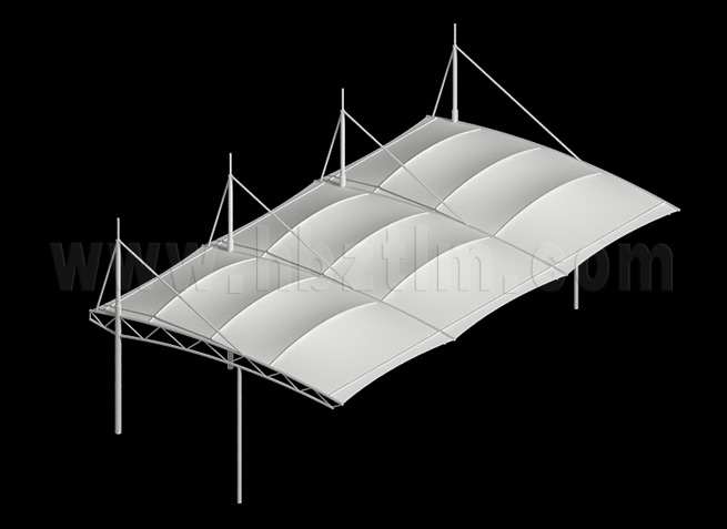 膜材采用PVDF國產(chǎn)或者進口建筑膜材、PTFE玻璃纖維建筑膜材、ETFE透明的永久性建筑膜材;自動放樣裁剪,高頻焊接,拉伸效果超強,曲線成型可千變?nèi)f化;膜材質(zhì)保一般可達15-20年。