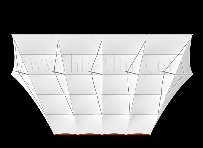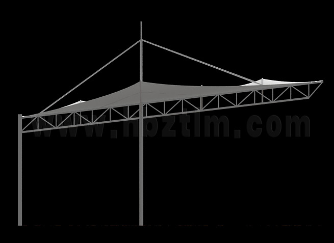 膜材采用PVDF國產(chǎn)或者進口建筑膜材、PTFE玻璃纖維建筑膜材、ETFE透明的永久性建筑膜材;自動放樣裁剪,高頻焊接,拉伸效果超強,曲線成型可千變?nèi)f化;膜材質(zhì)保一般可達15-20年。