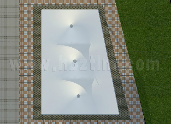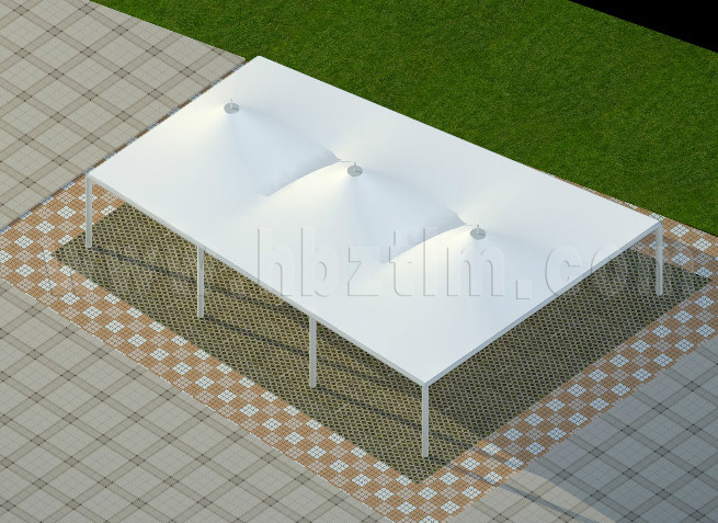 膜材采用PVDF國產或者進口建筑膜材、PTFE玻璃纖維建筑膜材、ETFE透明的永久性建筑膜材;自動放樣裁剪,高頻焊接,拉伸效果超強,曲線成型可千變萬化;膜材質保一般可達15-20年。