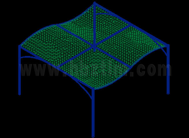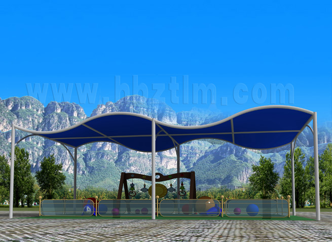 膜材采用PVDF國產或者進口建筑膜材、PTFE玻璃纖維建筑膜材、ETFE透明的永久性建筑膜材;自動放樣裁剪,高頻焊接,拉伸效果超強,曲線成型可千變萬化;膜材質保一般可達15-20年。