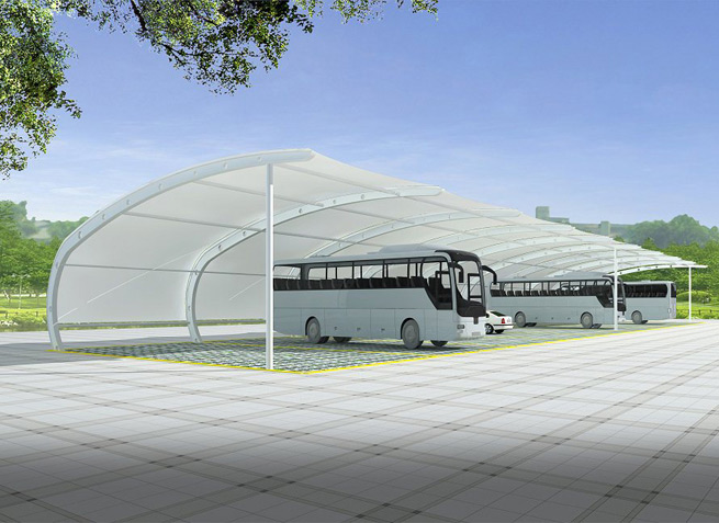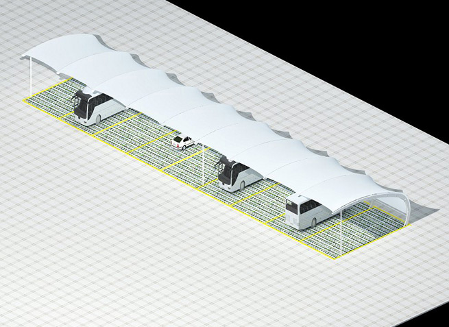 隨州市審計(jì)局異型鋼膜結(jié)構(gòu)汽車車棚,本項(xiàng)目采用前...