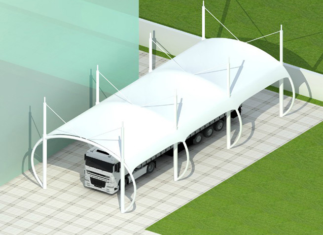 五子溝武漢機(jī)床廠T型圓管膜結(jié)構(gòu)車棚,本項目采用...