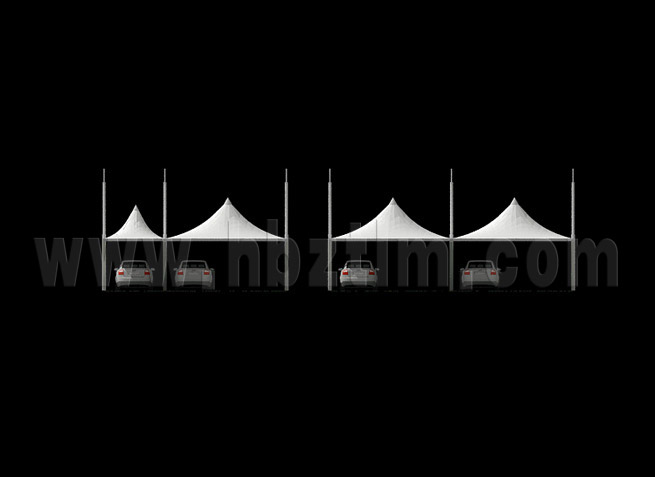 膜材采用PVDF國產或者進口建筑膜材、PTFE玻璃纖維建筑膜材、ETFE透明的永久性建筑膜材;自動放樣裁剪,高頻焊接,拉伸效果超強,曲線成型可千變萬化;膜材質保一般可達15-20年。