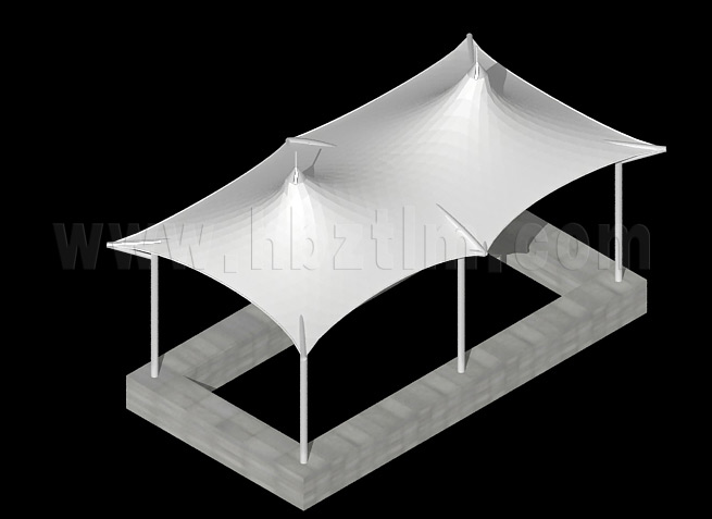 膜材采用PVDF國產(chǎn)或者進口建筑膜材、PTFE玻璃纖維建筑膜材、ETFE透明的永久性建筑膜材;自動放樣裁剪,高頻焊接,拉伸效果超強,曲線成型可千變?nèi)f化;膜材質(zhì)保一般可達15-20年。