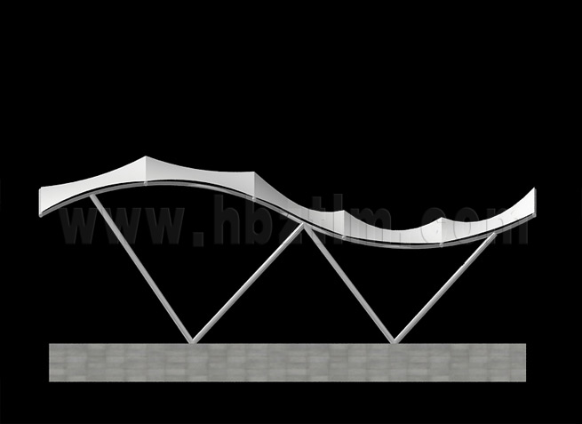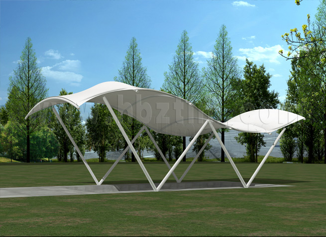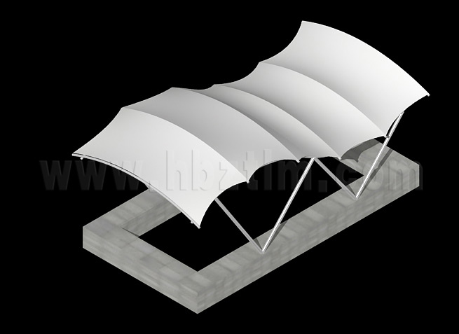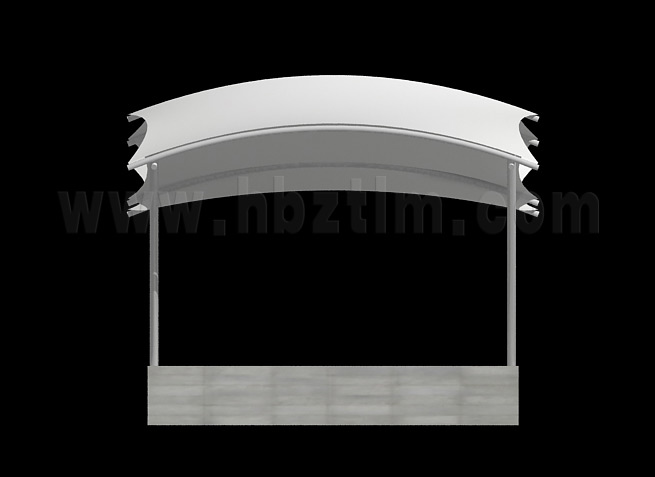 膜材采用PVDF國產或者進口建筑膜材、PTFE玻璃纖維建筑膜材、ETFE透明的永久性建筑膜材;自動放樣裁剪,高頻焊接,拉伸效果超強,曲線成型可千變萬化;膜材質保一般可達15-20年。