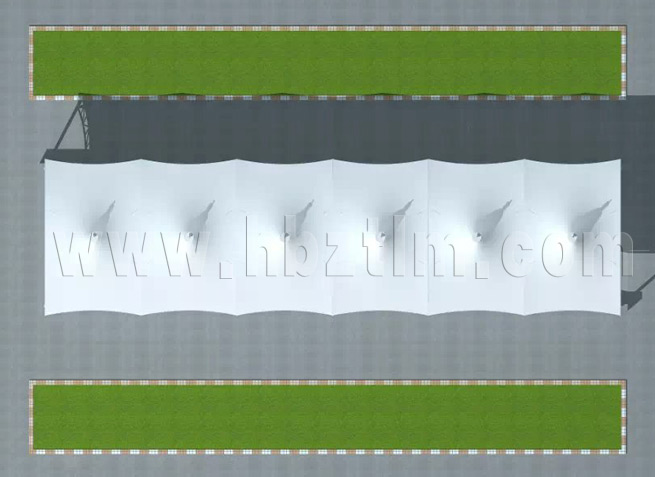 膜材采用PVDF國(guó)產(chǎn)或者進(jìn)口建筑膜材、PTFE玻璃纖維建筑膜材、ETFE透明的永久性建筑膜材;自動(dòng)放樣裁剪,高頻焊接,拉伸效果超強(qiáng),曲線成型可千變?nèi)f化;膜材質(zhì)保一般可達(dá)15-20年。