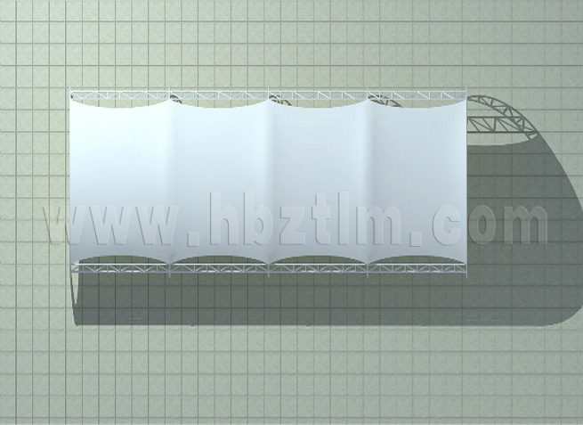 膜材采用PVDF國(guó)產(chǎn)或者進(jìn)口建筑膜材、PTFE玻璃纖維建筑膜材、ETFE透明的永久性建筑膜材;自動(dòng)放樣裁剪,高頻焊接,拉伸效果超強(qiáng),曲線成型可千變?nèi)f化;膜材質(zhì)保一般可達(dá)15-20年。