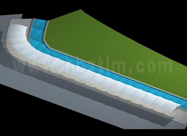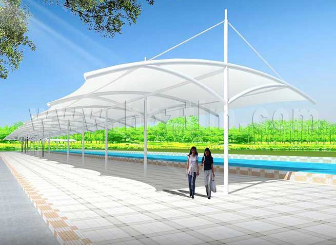 膜材采用PVDF國產(chǎn)或者進口建筑膜材、PTFE玻璃纖維建筑膜材、ETFE透明的永久性建筑膜材;自動放樣裁剪,高頻焊接,拉伸效果超強,曲線成型可千變?nèi)f化;膜材質(zhì)保一般可達15-20年。