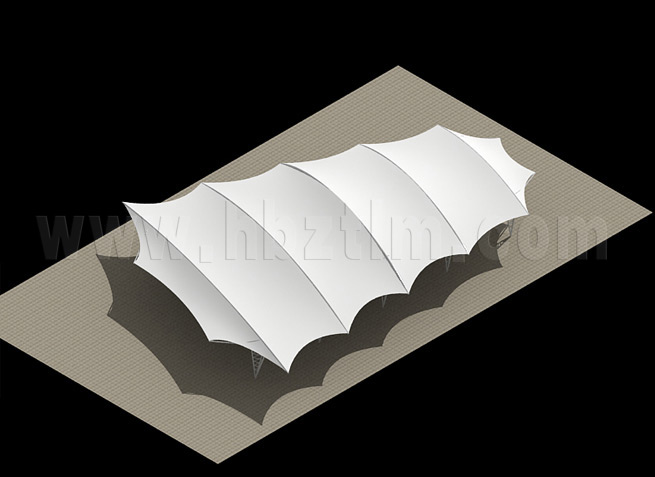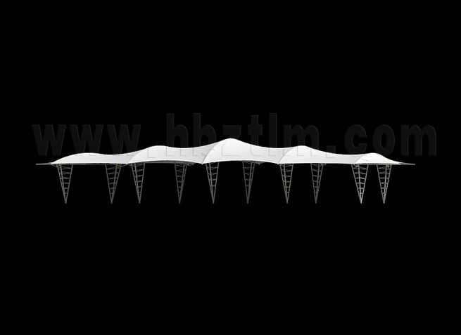 膜材采用PVDF國產(chǎn)或者進口建筑膜材、PTFE玻璃纖維建筑膜材、ETFE透明的永久性建筑膜材;自動放樣裁剪,高頻焊接,拉伸效果超強,曲線成型可千變?nèi)f化;膜材質(zhì)保一般可達15-20年。