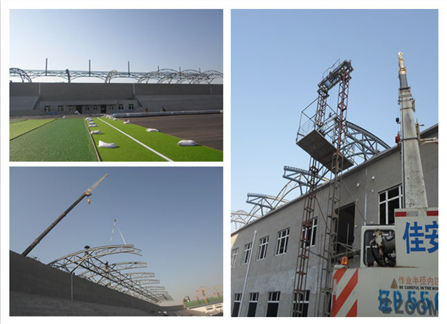 圖1 遼寧財(cái)貿(mào)學(xué)院體育看臺(tái)膜結(jié)構(gòu)鋼結(jié)構(gòu)現(xiàn)場(chǎng)施工圖