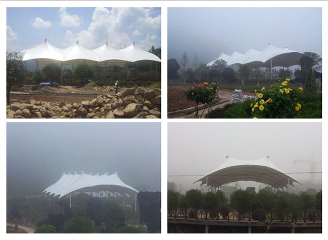 圖3 江西南昌風(fēng)景區(qū)網(wǎng)球場(chǎng)頂棚膜結(jié)構(gòu)完工成品圖照片