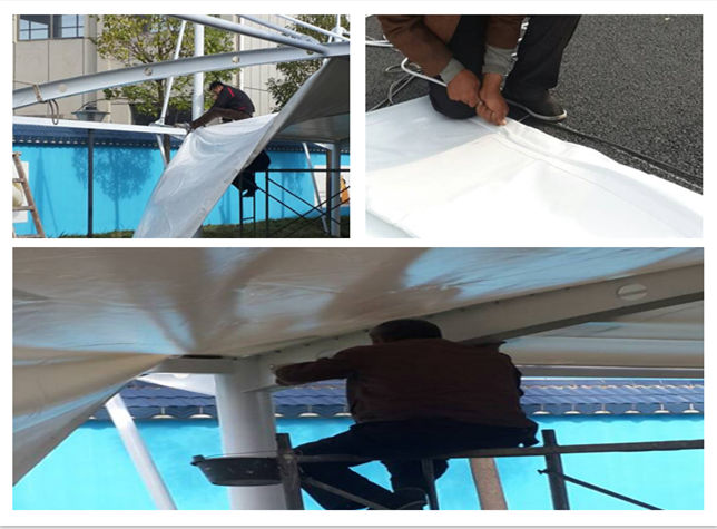 圖2 仙桃地稅局膜結(jié)構(gòu)停車棚拉膜現(xiàn)場施工圖