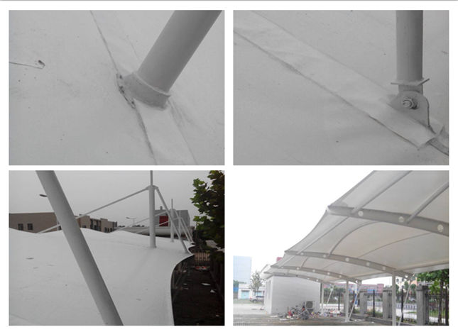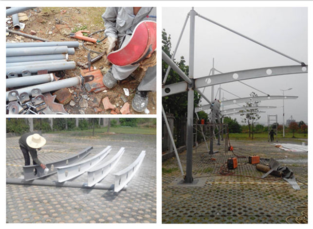 漢川吊塔式異形鋼膜結(jié)構(gòu)停車棚,本項目采用前軟邊后硬邊張拉形式;結(jié)構(gòu)由立柱、拉桿、挑梁、橫桿構(gòu)成,其挑梁和中間橫桿一般采用異形鋼挑梁形式,美觀而不積水且抗負荷能力強;膜材采用3010白色建筑膜材,15年質(zhì)保,整體結(jié)構(gòu)美觀實用,經(jīng)濟牢固,臻至完美。