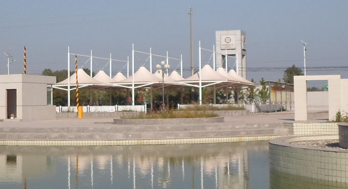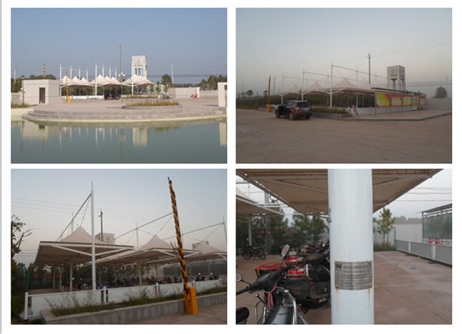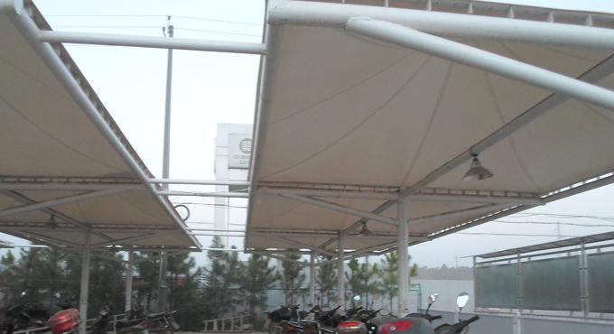 圖1 恒天嘉華冒頂膜結(jié)構(gòu)自行車車棚現(xiàn)場(chǎng)成品圖