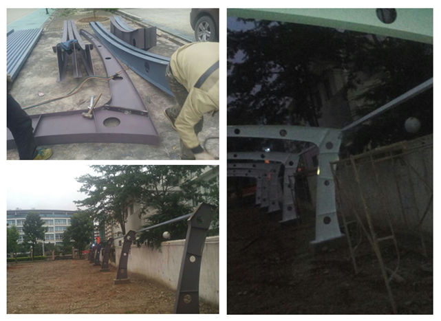 圖1 新豐氣象局膜結(jié)構(gòu)停車棚鋼結(jié)構(gòu)現(xiàn)場施工圖