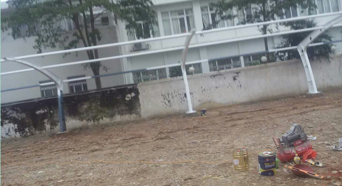 ? 新豐縣氣象局異形鋼L型膜結(jié)構(gòu)車棚,本頂目為L型膜結(jié)構(gòu)車棚,采用異形鋼梁 前軟邊,后硬邊張拉形式,美觀而實用;膜材采用PVDF白色車棚專用建筑膜材,整體結(jié)構(gòu)從設(shè)計到施工,都精工細作,臻至完美。?