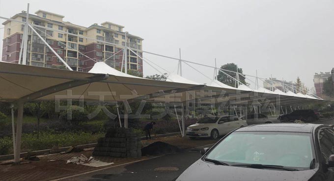 黃石黃金山開(kāi)發(fā)區(qū)四棵街道辦事處選擇與中天立美膜結(jié)構(gòu)公司合作膜結(jié)構(gòu)車(chē)棚項(xiàng)目,本次膜結(jié)構(gòu)車(chē)棚項(xiàng)目采用帽頂張拉式結(jié)構(gòu),帽頂造型牢固,美觀,更具有一定的景觀性。