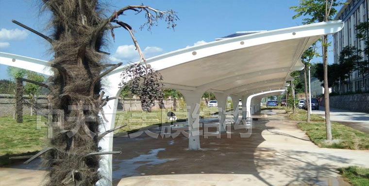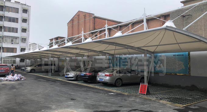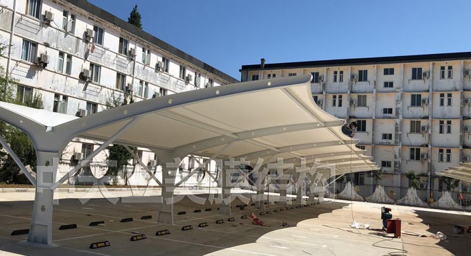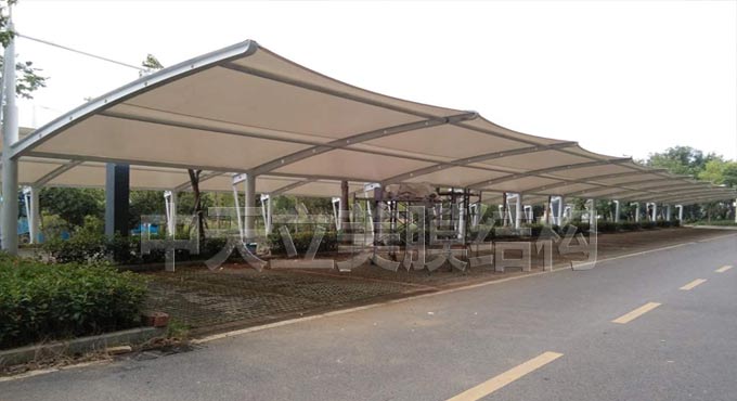 該膜結(jié)構(gòu)車棚項(xiàng)目采用的是帽頂張拉式膜結(jié)構(gòu)車棚樣式,這次膜結(jié)構(gòu)...