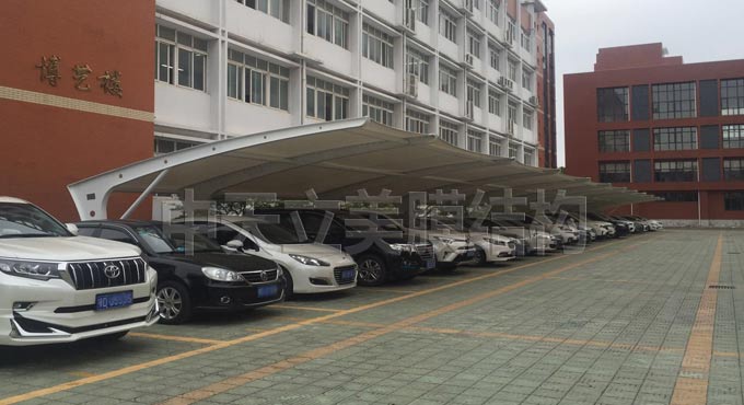 開工時(shí)間:2018.8.3 查看詳情荊州江陵縣實(shí)驗(yàn)高中與中天立美膜結(jié)構(gòu)公司簽定膜結(jié)構(gòu)停車棚項(xiàng)目已順利完工;該項(xiàng)目客戶選擇L型膜結(jié)構(gòu)停車棚樣式 ,我公司設(shè)計(jì)部在老版L型膜結(jié)構(gòu)停車棚樣式的基礎(chǔ)上加以改良,立柱中間加一根撐桿,加固鋼結(jié)構(gòu),這樣膜結(jié)構(gòu)停車棚在大風(fēng)大雪天氣也不用擔(dān)心,放心安全使用。