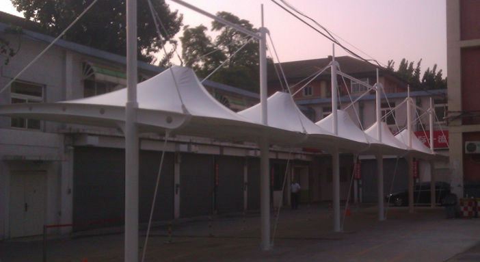 北京冀北電網(wǎng)異形鋼冒頂膜結(jié)構(gòu)停車棚,本頂目為冒頂式膜結(jié)構(gòu)車棚,采用連帽全軟邊張拉形式,美觀而實(shí)用; 膜材采用PVDF白色車棚專用建筑膜材,整體結(jié)構(gòu)從設(shè)計(jì)到施工,都精工細(xì)作,臻至完美。