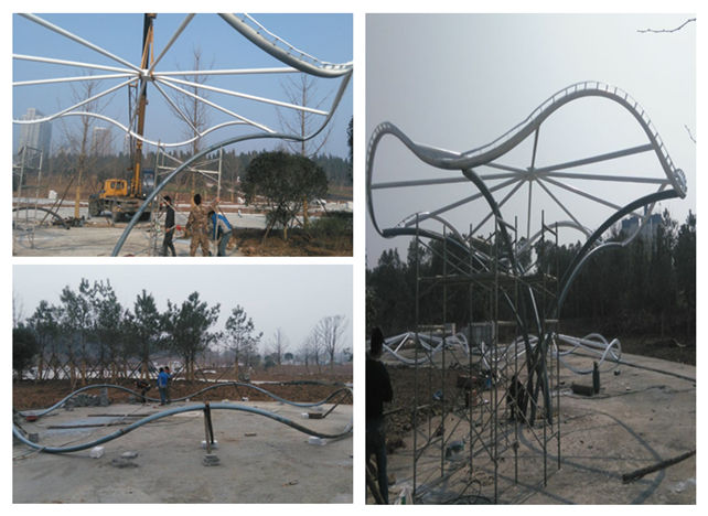 圖1 千佛洞植物園景觀膜結(jié)構(gòu)鋼結(jié)構(gòu)現(xiàn)場(chǎng)施工圖