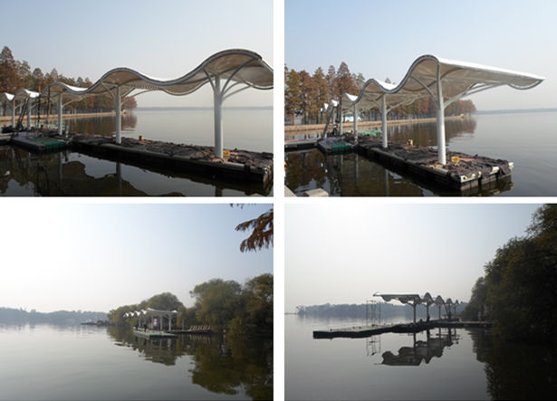 圖2 東湖碼頭景觀膜結(jié)構(gòu)現(xiàn)場(chǎng)成品圖