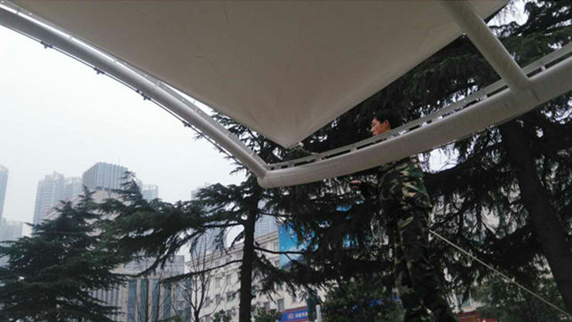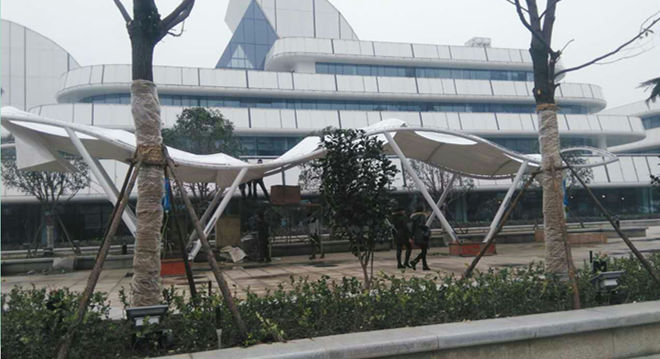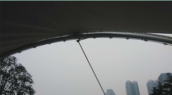 武漢科技館張拉膜景觀棚工程,該項目結構為S型景觀功能性膜結構,也為波浪型結構,其立柱可放中間或者是兩側,根據(jù)功能的需要,多為弧管連接,展現(xiàn)其優(yōu)美的線條感,通常在出入口、通道連廊、車站碼頭或者公園、廣場等地方運用的極為廣泛。