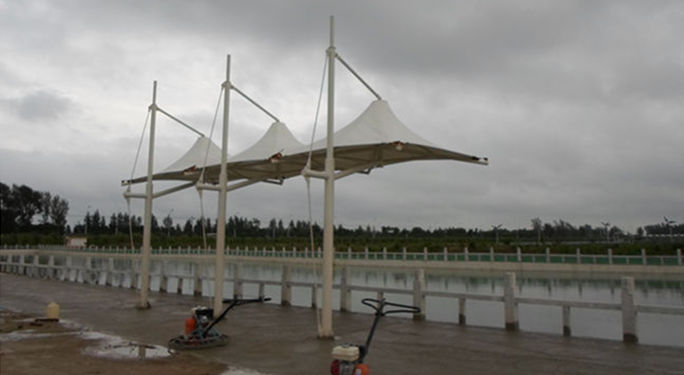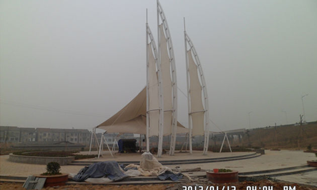 開工時(shí)間:2015年7月20日 查看詳情宜都枝城廣場(chǎng)景觀膜結(jié)構(gòu)?工程,該項(xiàng)目是典型的張拉景觀膜結(jié)構(gòu),以風(fēng)帆為原型設(shè)計(jì),造型完美,做工精細(xì),層次感非常強(qiáng),巍然屹立,雄偉而優(yōu)美,其意境也豐富,蒸蒸日上 一帆風(fēng)順!此類含義景觀膜結(jié)構(gòu)廣泛運(yùn)用于廣場(chǎng)、地標(biāo)、各種場(chǎng)所的重點(diǎn)地方處等。