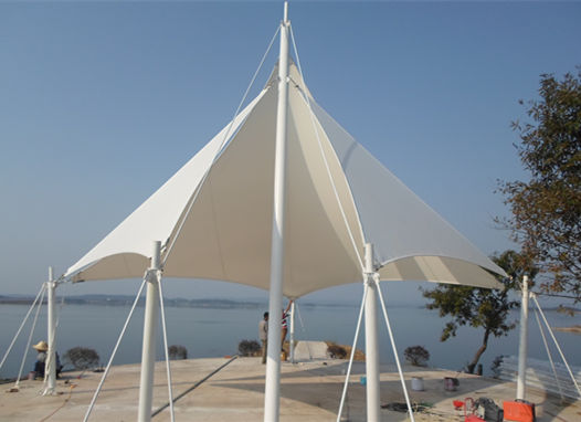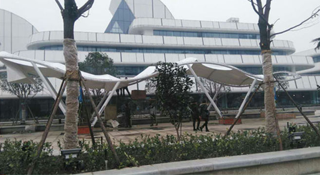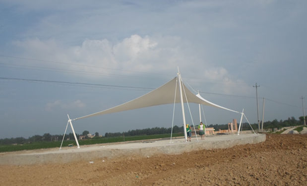 開工時(shí)間:2013年5月16日 查看詳情該項(xiàng)目是典型的景觀張拉膜結(jié)構(gòu),俗稱飛燕。其結(jié)構(gòu)以鋼柱為受力支撐點(diǎn),全軟邊鋼索預(yù)應(yīng)力張拉成型,各環(huán)節(jié)制作安裝精度要求極高,整體結(jié)構(gòu)輕盈而優(yōu)美,既有鋼柱、鋼索牽引的力量之美,又有pvdf建筑膜材的柔性曲線之美,大氣、時(shí)尚、牢固實(shí)用,剛與柔完美融合,深受客戶的喜愛。