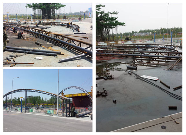 圖1 七彩莊園舞臺膜結(jié)構(gòu)鋼結(jié)構(gòu)現(xiàn)場施工圖
