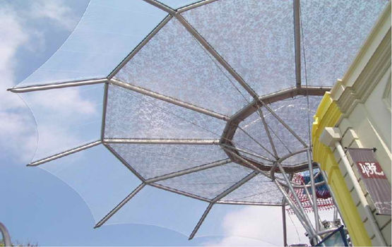 不僅如此,這種膜還具有自清潔功能,使灰塵不易附在其表面,清潔周期大約為5年。這種材料另一大優(yōu)點就是可在現(xiàn)場預制成薄膜氣泡,方便施工和維修。另外成本合理也是其極具競爭力的另一優(yōu)勢,覆蓋層加上結(jié)構(gòu)的費用只有玻璃的一半,而使用壽命卻長達35年。