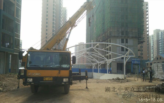 這次鄂州工程總面積有1000多個平方米,共做了三個小區(qū),6個小區(qū)停車庫出入口膜結(jié)構(gòu)。